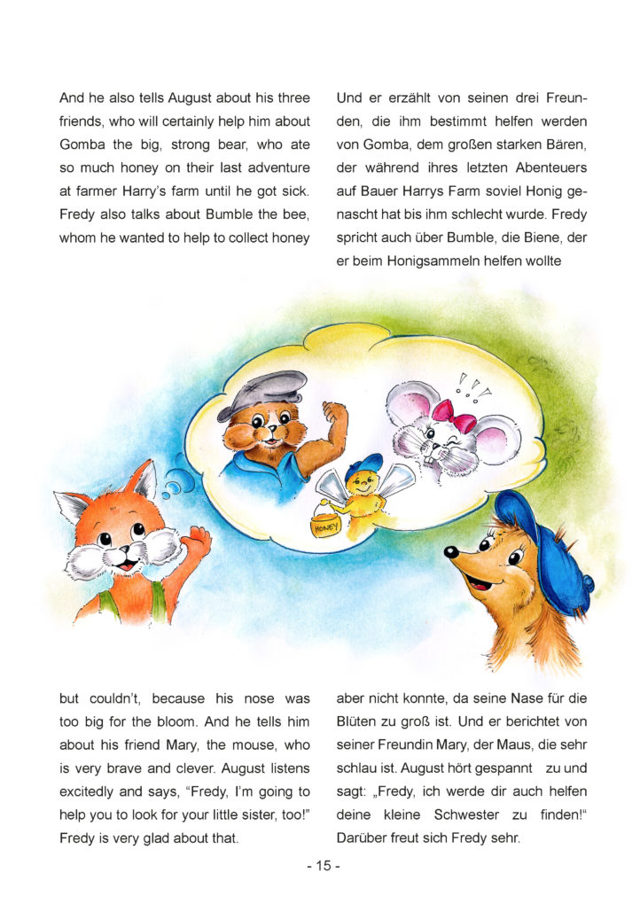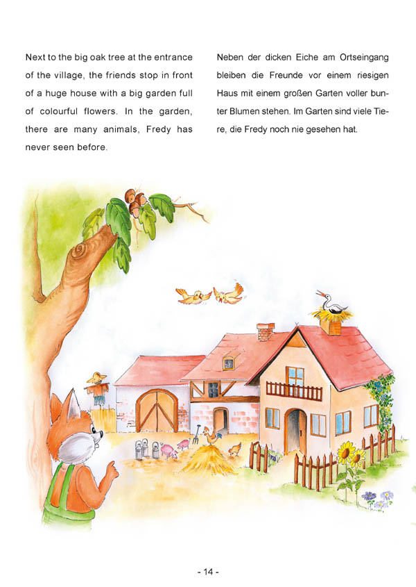 Fredy, der kleine Fuchs ist der Held in der Geschichte des jeweiligen Kinderbuches. Alle Kinderbücher sind in deutscher und englischer Sprache geschrieben. Für jede Sprache gibt es das passende Hörbuch.
